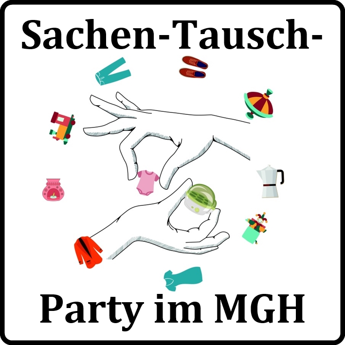 Die Sachen-Tausch-Party im MGH ist ein beliebter Treffpunkt der „share economy“ Kaiserslauterns. Im Sinne einer bewussten Konsumhaltung geht es viermal im Jahr nicht nur darum, Dinge zu tauschen statt zu kaufen statt wegzuwerfen. Sondern auch um den Austausch untereinander, z.B. über das Angebot an second-hand-Läden, Sozialkaufhäusern und anderen Tauschtreffen in Kaiserslautern, oder das Tauschen von Zeit und Können beim Tauschring.