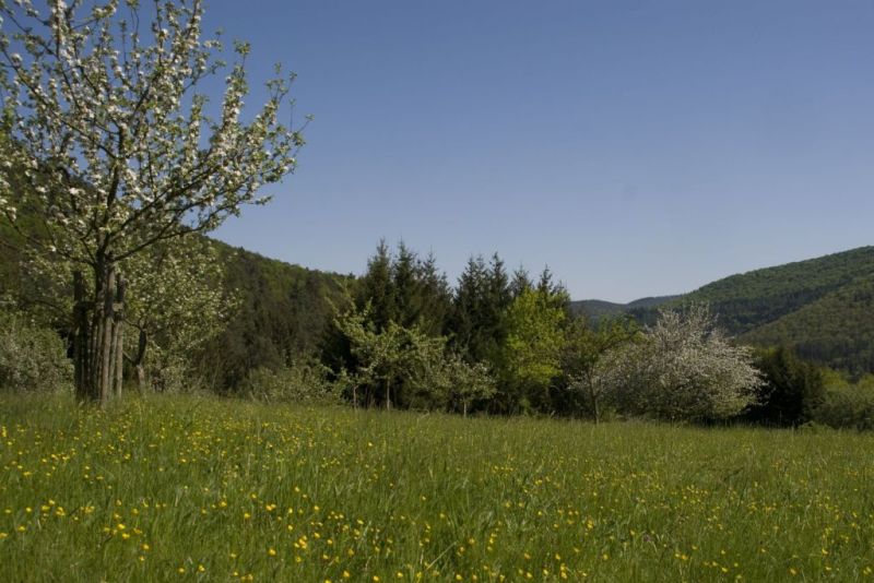 Neben anderen Lebensräumen im Fokus des „LIFE Biocorridor“-Projekts: Streuobstwiesen als wertvolle Biotope, hier bei Bobenthal (Bild: Biosphärenreservat/frei)