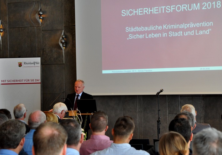 „Meide ich bestimmte Straße, wenn ich nach einem Kinobesuch spätabends nach Hause gehe? Gibt es Vierteil in meiner Stadt, in denen ich nicht leben möchte?“ Mit diesen Fragen eröffnete Polizeipräsident Michael Denne am Donnerstag das „Sicherheitsforum 2018“ im Deutschordensaal in Kaiserslautern. Er stellte die Fragen zwar nur in den Raum, aber sicherlich begann in diesem Moment bei jedem der rund 70 Teilnehmer das sogenannte „Kino im Kopf“ und jede/r hatte Plätze oder Orte vor Augen, die ihm oder ihr so etwas wie Gänsehaut verursachen. Und genau darauf wollte der Behördenleiter des Polizeipräsidiums Westpfalz hinaus, denn das Thema des Tages hieß: „Sicher leben in Stadt und Land – Für mehr Sicherheit im öffentlichen Raum und in Stadtquartieren“.