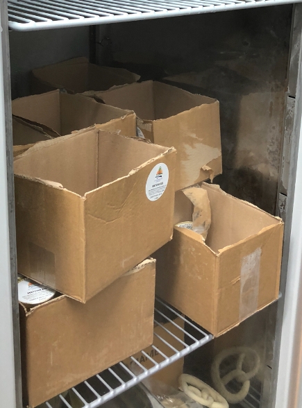Beschreibung Foto: Einer der leergeräumten Kühlschränke des Imbisses.