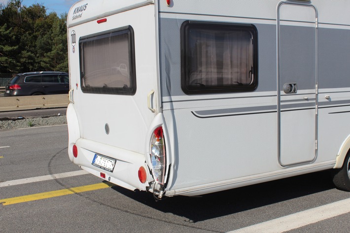 Am Samstagnachmittag kam es auf der BAB 6 in Richtung Mannheim, zwischen den Anschlussstellen KL-Einsiedlerhof und KL-West zu einem Auffahrunfall. Ein 54-jähriger Fahrer eines Geländewagens fuhr dabei im Baustellenbereich nahezu ungebremst auf das Heck eines vorausfahrenden Wohnwagengespannes auf. Durch den Aufprall wurde der Geländewagen anschließend gegen die rechten Schutzplanken geschleudert. Der Wohnwagen des sich auf der Heimreise aus dem Urlaub befindlichen Ehepaares, wurde so stark beschädigt, dass dieser abgeschleppt werden musste. Verletzt wurde bei dem Unfall niemand. Insgesamt entstand ein Sachschaden in Höhe ca. 15.000 Euro.