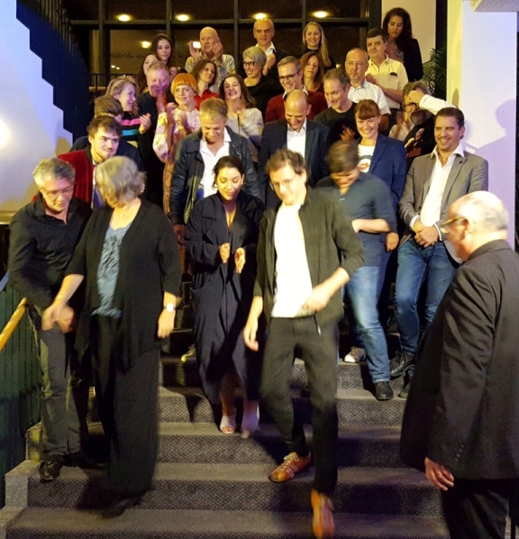 BU: Beeindruckender Abend: die Mitwirkenden an den „Nibelungen“ mit Intendant Urs Häberli (rechts vorn)