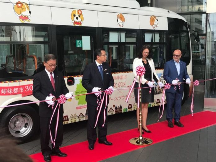 „Unsere japanischen Freunde habe ein anspruchsvolles, aber sehr abwechslungsreiches Programm vorbereitet“, so die Bürgermeisterin. Auf dem Programm standen unter anderem die Neueinweihung des Kaiserslauterer Platzes in Bunkyo-Ku, den Skulpturen des Künstlerpaares Barbara und Gernot Rumpf zieren, und der neu gestaltet worden war. Auch ein Linienbus war zu Ehren der deutschen Partnerstadt mit besonderen Motiven verziert worden und wurde nun von Vertretern beider Städte offiziell in Dienst gestellt. Weiterer Programmpunkt war die Gründung eines neuen Freundeskreises Kaiserslautern Bunkyo-Ku, der bereits eine Bürgerreise von Bunkyo-Ku nach Kaiserslautern im kommenden Jahr plant, die von einer offiziellen Delegation der Partnerstadt begleitet werden soll. Mitglieder dieses Vereins sind auch ehemalige Austauschschülerinnen und -schüler, die in Gastfamilien in Kaiserslautern geweilt haben und die sich nun für eine intensive Vernetzung der beiden Städte im Jugendbereich engagieren. In diesem Zusammenhang hat die Delegation auch eine Grundschule in Bunkyo-Ku besucht, wo die Städtepartnerschaft schon früh thematisiert wird und die Kinder schon auf den Austausch mit Kaiserslautern vorbereitet werden. Auch ein Jugendzentrum wurde besucht.