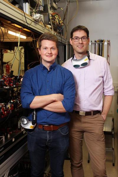 Bu: Die beiden Physiker Professor Dr. Artur Widera (rechts) und sein Doktorand Felix Schmidt erforschen …