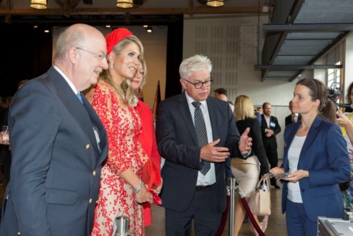 Prof. Dr. Detlef Zühlke stellt Königin Máxima einen Industrie 4.0-Demonstrator der SmartFactory-KL auf der Fachkonferenz „Sichere und Digitale Industrie“