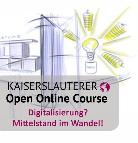 Im Wintersemester 2018/19 bietet die TU Kaiserslautern (TUK) den in Zusammenarbeit mit dem Mittelstand 4.0 Kompetenzzentrum Kaiserslautern für das Wissenschaftsjahr 2018 entwickelten Kaiserslauterer Open Online Course (kurz: KLOOC) zum Thema „Digitalisierung? Mittelstand im Wandel!“ erneut an.