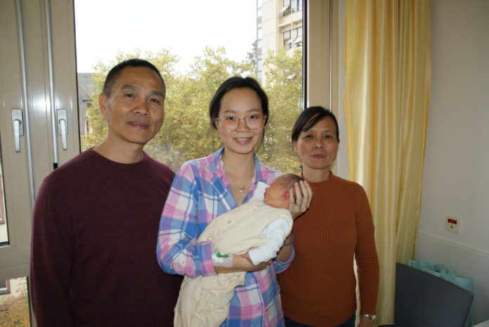 Das Foto zeigt Jun Wang mit ihren Eltern und der kleinen Carla.