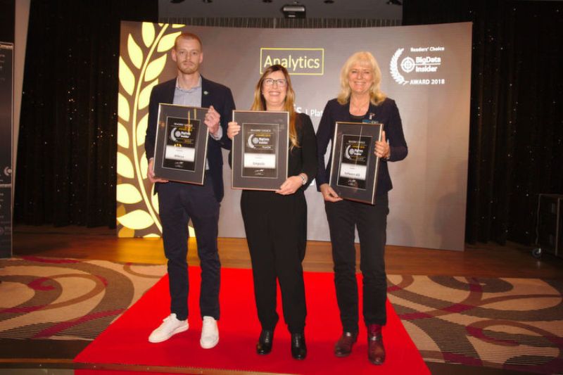 Bildbeschreibung: Die Gewinner der BigData-Insider Readers‘ Choice Awards aus der Kategorie „Analytics“ (v.l.n.r.): Nikolas Rummenigge (Alteryx), Martina Tomaschowski (Empolis) und Bärbel Strothmann (Software AG).