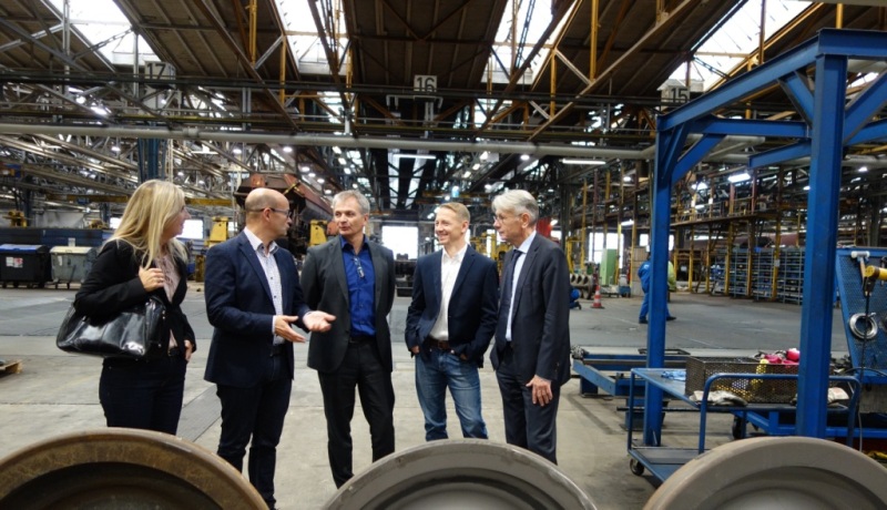 Es riecht nach Maschinenöl, die Funken sprühen und die Gabelstapler liefern verschieden beladene Paletten ab. Im Kaiserslauterer Werk der Railmaint GmbH mit Hauptsitz im sächsischen Delitzsch wirken die Arbeiter noch hauptsächlich in Handarbeit. Nur Logistik und Verwaltung sind vollständig digitalisiert. Wie der Spagat zwischen Traditionsgewerbe und digitaler Administration funktioniert, hat sich Oberbürgermeister Dr. Klaus Weichel am Donnerstag beim Betriebsbesuch zeigen lassen.