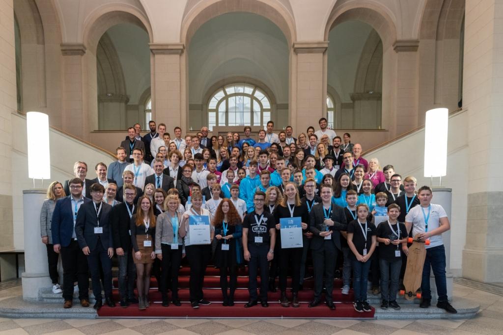 Die Plätze vier bis zehn erhielten jeweils ein Preisgeld in Höhe von 500 Euro. Neben der Preisverleihung war ein abwechslungsreiches Rahmenprogramm geboten: nach dem Grußwort des parlamentarischen Staatssekretärs Christian Hirte hielt Alexander Naumann von wehyve GmbH einen interaktiven Vortrag zum Thema „Crowd Source Innovation“. In einer anschließenden Gesprächsrunde teilten Fabian Stenger (Geschäftsführer von FlixBus DACH), Julia Schössler (Geschäftsführerin schoesslers GmbH) und Chris Töppe (Geschäftsführer von Protohaus gGmbH) ihre Erfahrungen als Unternehmensgründer mit den anwesenden Schülerinnen und Schülern