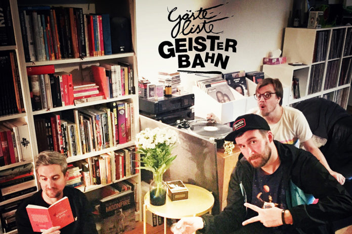 Drei guys, zwischen 30 und 40, sitzen, in Sesseln, auf der Bühne und unterhalten sich. Das sind die Podcast-Stars Deutschlands: Gästeliste Geisterbahn. Freundestreffen mit Kultcharakter (stuttgarter-zeitung.de). Wir treffen uns regelmäßig und unterhalten uns über Sachen, die wir auffällig genug fanden, sie den anderen zu erzählen. Eigentlich ist es eine Art erzwungenes Freundestreffen … Hier ist der Termin fix – alle zwei Wochen. Der Podcast ist eine wunderbar einfache Form der Unterhaltung … Jeder bringt Alltagsbeobachtungen mit, und die werden dann von uns durch so einen Assoziationsfleischwolf gedreht, jeder guckt, was ihm dazu einfällt, und daraus entstehen die absurdesten Geschichten … Beliebte Themen, z.B.: Erlebnisse aus dem Supermarkt, Familieninterna, misslungene Flirtversuche. Podcast oder live, das Trio macht das Gleiche. Ihr Fernziel: Auftritt auf der Berliner Waldbühne (22.000 Besucher) – alsdann 😉 Heute, erstmal: Viel Spaß!