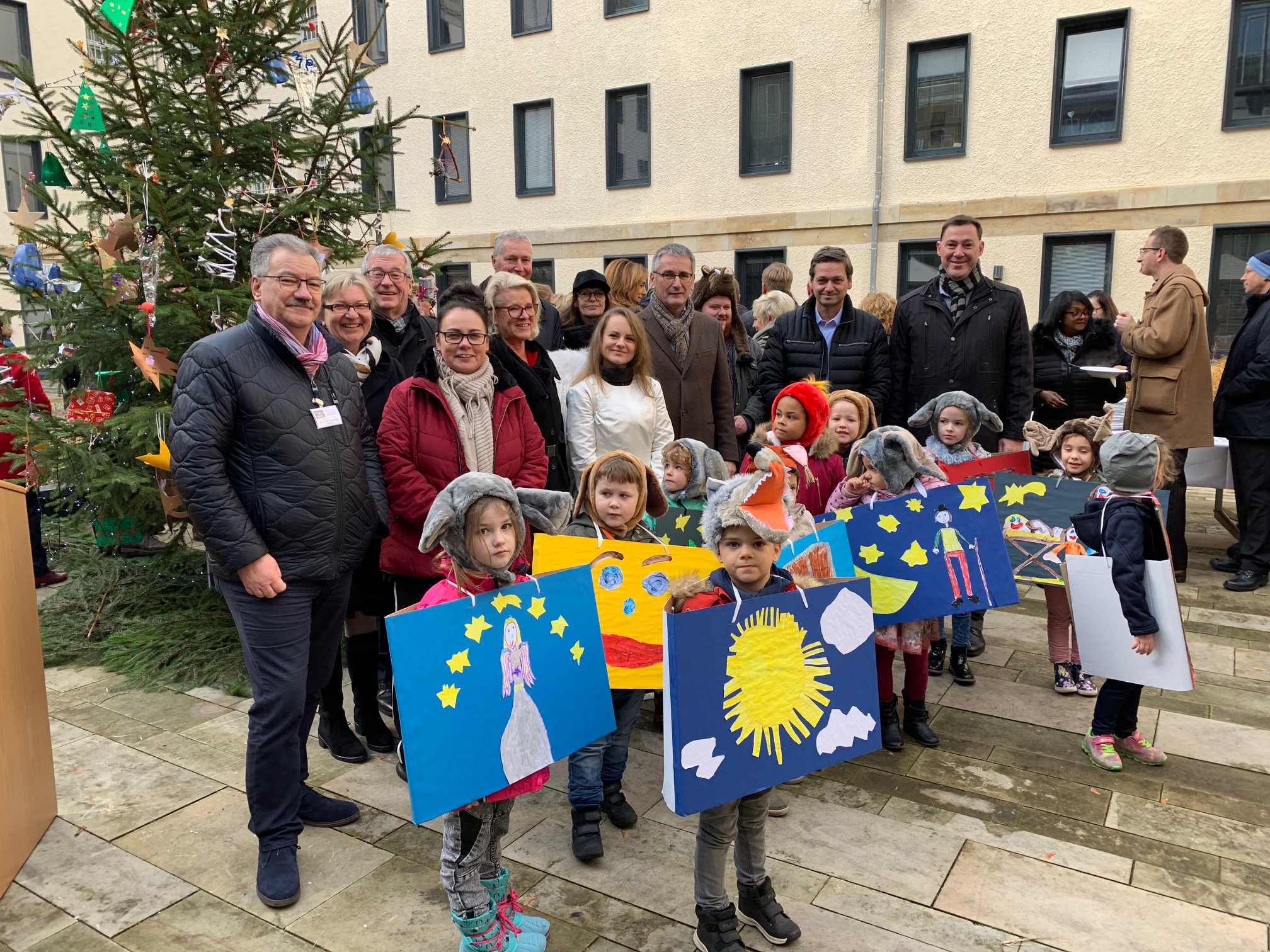 Der prachtvolle Schmuck, welcher die Kaiserslauterer Fichten erst zu echten Weihnachtsbäumen macht, ist den Kindergartenkindern der Protestantischen Kita Betzenberg zu verdanken. Sie hatten den Baumschmuck nicht nur selbst gebastelt, sondern ihre Materialien – Kiefernzapfen, Zweige, Äste, Waldfrüchte und vieles mehr – auch selbst im Pfälzer Wald gesammelt. Zusätzlich hatten sie auch eine musikalisch-weihnachtliche Aufführung vorbereitet.