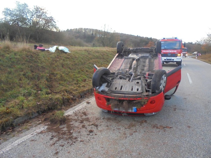 Schallodenbach – Ein Pkw hat sich am Dienstagmorgen auf der Landstraße zwischen Mehlbach und Schallodenbach überschlagen. Die 37-jährige Fahrerin war mit ihrem Auto in einer Kurve von der Fahrbahn abgekommen. Sie verlor die Kontrolle über ihren Wagen. Das Auto steuerte eine Böschung hoch und überschlug sich. Die Fahrerin und ihr 10-jähriger Sohn kamen mit dem Schrecken davon. Sie waren offensichtlich unverletzt; der Rettungsdienst brachte sie vorsorglich ins Krankenhaus. Das Fahrzeug wurde abgeschleppt. Die Polizei geht von einem wirtschaftlichen Totalschaden aus. Während der Unfallaufnahme war die Landstraße zeitweise in beide Richtungen gesperrt. |erf