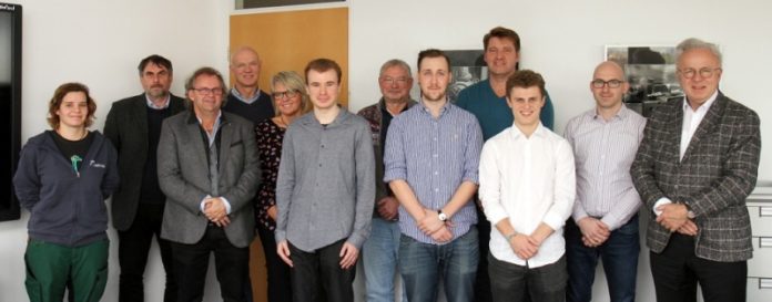Zweite Reihe: Henning Braß (Leiter Zentrale Elektronik), Friedrich Witthaus (Leiter Zentrale Metallwerkstätten), Alexandra Bastian (Ausbildungsangelegenheiten), Jürgen Buch (Ausbilder für Fachinformatiker); Christian Render (Ausbilder für Industriemechaniker), Martin Krauß (Ausbilder für Elektroniker, Geräte und Systeme). Foto: Thomas Koziel