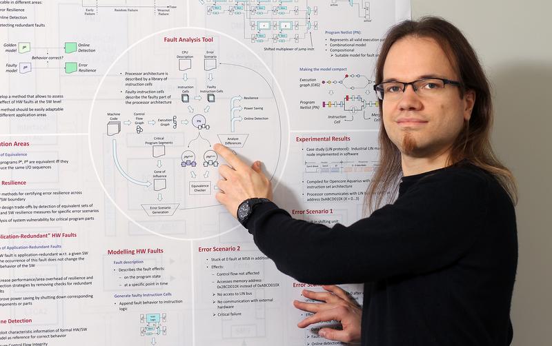 Ob Flugzeug, Hochgeschwindigkeitszug, Industrieroboter oder Waschmaschine – hierin laufen kleine Computer, die dafür sorgen, dass die Technik reibungslos läuft. Solche eingebetteten Systeme (Embedded Systems) kommen auch in sicherheitsrelevanten Bereichen zum Einsatz. Mit aufwendigen Tests wird die darin verbaute Hardware regelmäßig geprüft. Dass nicht alle Fehler in der Hardware Auswirkungen auf die Software haben, haben Kaiserslauterer Forscher mit einem neuen Verfahren gezeigt. Das bedeutet: Nicht die gesamte Hardware, sondern nur die Stellen, an denen Fehler Folgen für die Software haben, müssen geprüft werden. Für ihre Studie sind die Forscher kürzlich ausgezeichnet worden.