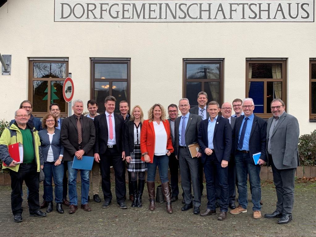 Zwischenzeitlich haben Arbeitstreffen zu allen Themenbereichen stattgefunden und die fünf Koordinatoren präsentierten am 19.12. im Dorfgemeinschaftshaus im Niederkirchener Ortsteil Heimkirchen bei einem gemeinsamen Treffen mit den Vertretern der Kreise und den beteiligten Kommunen erste Arbeitsergebnisse. Gastgeber Landrat Leßmeister, seine Kollegin Dickes und die beiden Kollegen Guth und Rubly sowie Dekan Schwarz waren von den ersten Ergebnissen beeindruckt. Nach einer Diskussion zu den verschiedenen Themengebieten war man sich bald über den nächsten Schritt einig, dass es nun darauf ankomme, aus der Bestandsanalyse weitere Ideen zu den einzelnen Themenfeldern konkret zu entwickeln und vor allem die beteiligten Ortsbürgermeister rund um die „Alte Welt“ über den bisherigen Sachstand zu informieren. Alle Beteiligten sind sich einig, dass man gemeinsam auf dem richtigen Weg ist, um motiviert und ideenreich die ländliche Struktur zu stärken. Dementsprechend blicken alle Beteiligten gespannt auf das nächste Treffen Mitte April, wo der Start erfolgen soll, gemeinsam erste konkrete Vorhaben in Angriff zu nehmen.
