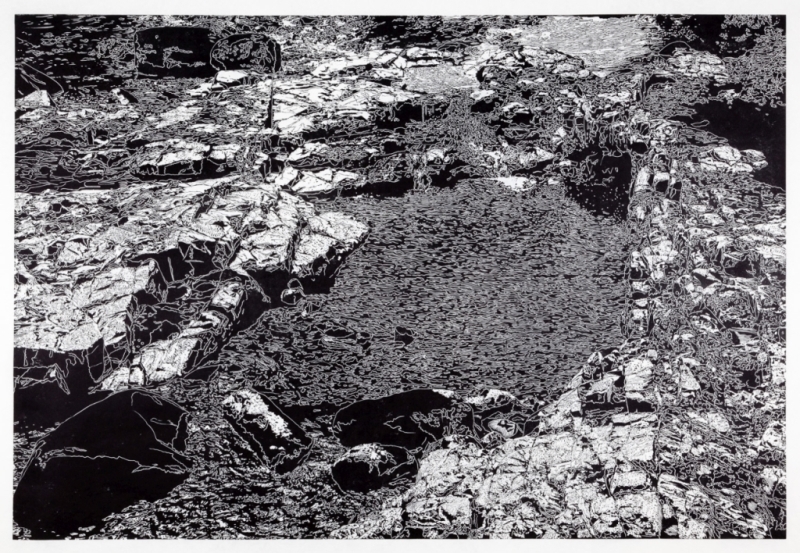 Bu: Linolschnitt von 2013: Philipp Hennevogls „Fluss“