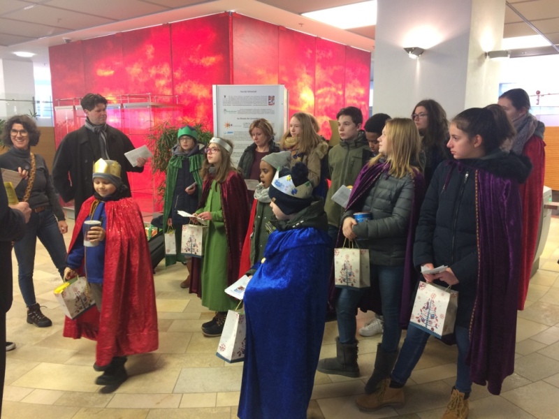 Die Kinder zogen in den Kostümen von Caspar, Melchior und Balthasar durch die Kundenhalle und boten schöne Lieder und Gedichte dar, denen sowohl Mitarbeiter als auch Kunden erfreut ihr Gehör schenkten und die alle Zuhörer zum stimmungsfrohen Mitsingen ermunterten. Im Anschluss wurde das Haus mit dem traditionellen Segen bedacht.