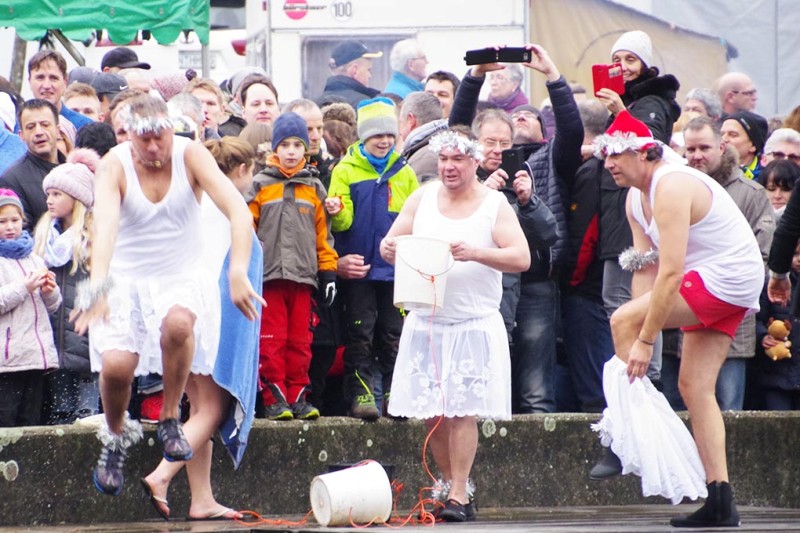 Bildunterschrift: Die Eistaucher machen sich bereit für den Sprung ins kalte Wasser.
