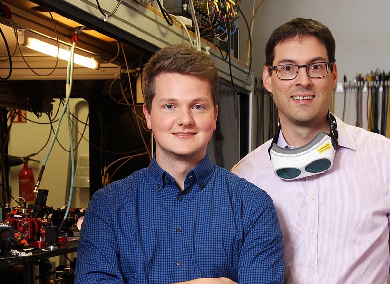 In einer aktuellen Studie haben sie gemeinsam mit Professor Eberhard Tiemann von der Gottfried Wilhelm Leibniz Universität Hannover untersucht, welche Effekte es gibt, wenn ein einzelnes Cäsium-Atom auf ein Rubidium-Atom trifft. Um die Teilchen zu beobachten, müssen die Forscher sie zunächst auf Temperaturen dicht über dem absoluten Temperaturnullpunkt abkühlen. „Im Anschluss haben wir die Atome mit einer optischen Pinzette miteinander in Kontakte gebracht“, sagt Felix Schmidt. Hierbei werden Atome mithilfe von Laserstrahlen festgehalten. Die Forscher haben nun ein einzelnes Cäsium-Atom in das Rubidium-Gas gegeben, um zu messen, was vor und nach dem Zusammenstoß der Atome passiert.