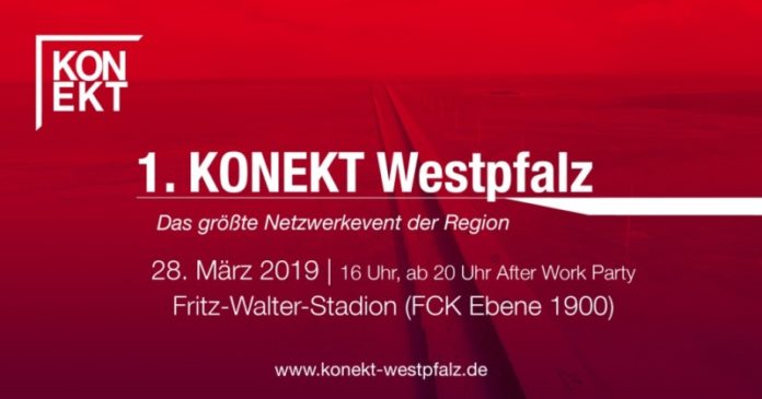 Am 28. März 2019 findet die erste Ausgabe der KONEKT Westpfalz. Bis zum 27. Februar können sich interessierte Unternehmen, Einzelunternehmer, Verbände und Institutionen bereits ab 75 EUR anmelden. Der Vertrauenspreis ist eine der Besonderheiten; die Aussteller entscheiden rein nach ihrer wirtschaftlichen Leistungskraft. Somit ergibt sich ein spannender Mix aus Startups und Global Playern. Netzwerken mit Format, das beschreibt die Idee hinter der KONEKT, hier verbindet sich Pop-Up-Messe mit Netzwerkevent. Von 16:00 Uhr bis 20:00 Uhr ist die Messe geöffnet, ab 20:00 Uhr schließt sich die After Work Party in der FCK Ebene 1900 an. Der Eintritt für Besucher ist frei.