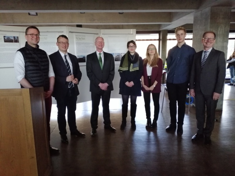 Schuldezernent Joachim Färber hat das Engagement von fünf Schülerinnen und Schülern des Hohenstaufen-Gymnasiums (HSG) für die Aufarbeitung der Geschichte der ersten weiblichen Kaiserslauterer Stadtratsmitglieder gewürdigt. Im Rahmen der Eröffnung der Ausstellung „Frauen und die Revolution von 1918 in Kaiserslautern“ im Rathausfoyer bedankte sich der Beigeordnete bei Lena Kreis, Jule Schürmann, Julia Weinberg, Niklas Stoeck und Moritz Sattler. Unter Leitung ihres Geschichtslehrers Christian Könne haben die Fünf in mühevoller Recherchearbeit die Biografien von Elsa Braun, Elise Hertel, Emma Kafitz, Lydia Keßler und Katharina Lang erarbeitet und in einer Ausstellung skizziert.