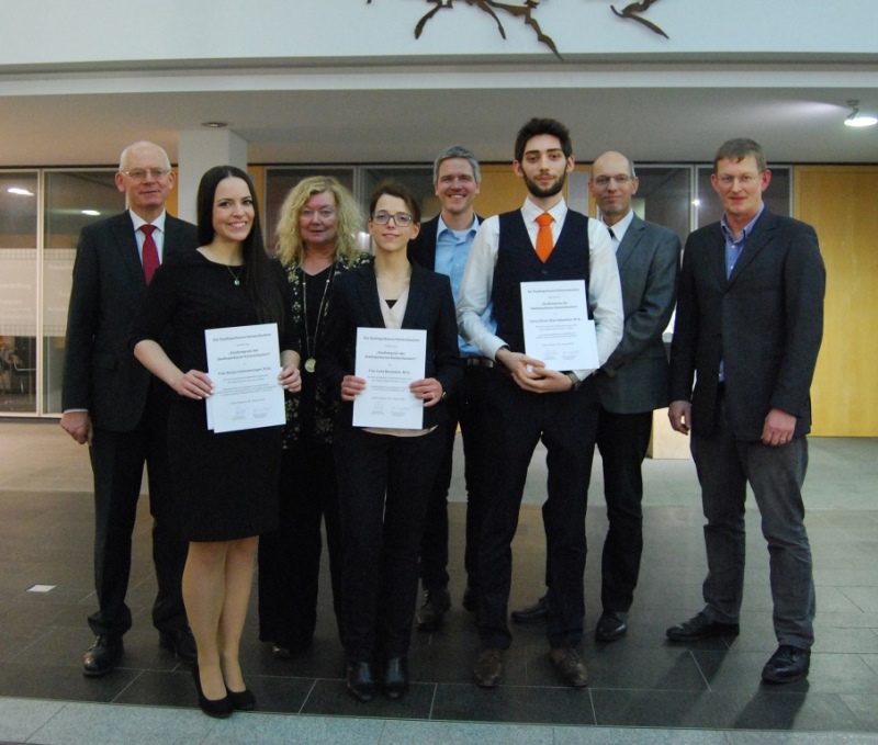 Im Rahmen einer feierlichen Preisverleihung in der Kundenhalle der Stadtsparkasse Kaiserslautern wurden in diesem Jahr Frau Lena Baumann, Frau Ronja Schlemminger und Herr Oliver Sebastian für ihre hervorragenden Leistungen im Masterstudium ausgezeichnet und mit einem Preisgeld von je 750 Euro bedacht.