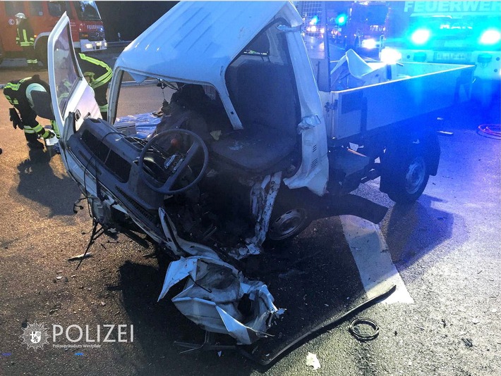 Der „Pfau“-Lkw wurde durch die Wucht des Aufpralls in die Schutzplanke gedrückt und der 48-jährige Fahrer in der Fahrerkabine eingeklemmt. Die Feuerwehr musste das Fahrzeug aufschneiden, um den Mann zu befreien. Er wurde mit Verdacht auf einen Rippenbruch und mehreren Prellungen ins Krankenhaus gebracht.