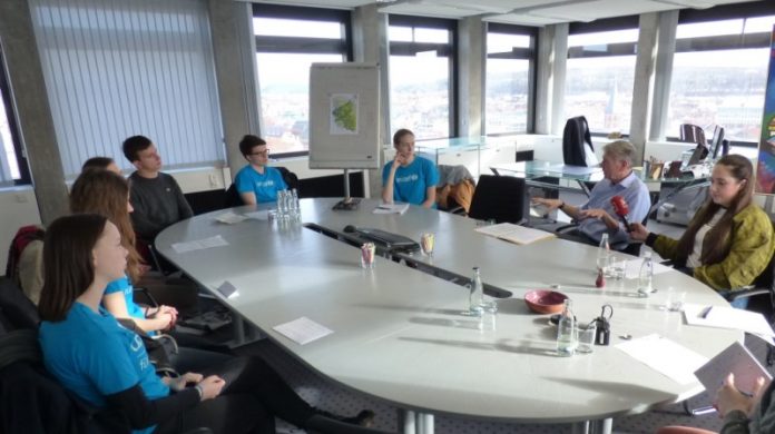 Oberbürgermeister Klaus Weichel hat sich am Dienstagnachmittag mit einer Gruppe von Jugendlichen des 2017 gegründeten UNICEF Juniorteams Kaiserslautern getroffen. Rund eine Stunde stand das Stadtoberhaupt den sechs Schülerinnen und Schülern Frage und Antwort zu verschiedensten stadt- und allgemeinpolitischen Themen, von der Frage nach mehr Fahrradständern an Schulen bis hin zum Wahlrecht ab 16. Die Fragen hatte das Juniorteam zuvor an verschiedenen Kaiserslauterer Gymnasien gesammelt. „Ich finde Eure Initiative klasse!“, lobte Weichel das Engagement der Jugendlichen. Er bot an, künftig regelmäßig Auskunft zu geben.