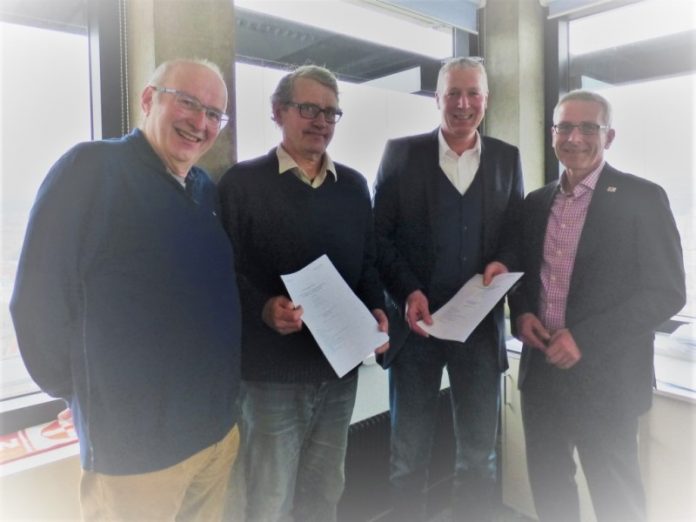 Bild: Peter Kiefer (mitte rechts) bei der Vertragsunterzeichung