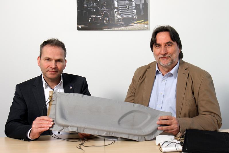 Am Zentrum für Nutzfahrzeugtechnologie beziehungsweise im Arbeits-Kreis Infrarot forscht ein Team um Dr. Kosack und Professor Dr. Roman Teutsch schon lange an dieser Technik: Es hat eine Infrarot-Heizung entwickelt, die in Fahrerkabinen zum Einsatz kommen kann. Sie besteht aus Matten (Pads) verschiedener Größen. In den Matten befindet sich stromleitendes Material, das die Oberflächen der Pads aufheizt, die dann Infrarotlicht abstrahlen. „Die Pads können punktuell an verschiedenen Stellen in der Fahrerkabine verbaut werden, zum Beispiel an der Innenseite der Türen, im Dach oder in der Armatur“, sagt Professor Teutsch, der das Lehrgebiet für Konstruktion in Maschinenbau und Fahrzeugtechnik leitet und dem Zentrum für Nutzfahrzeugtechnologie vorsteht. Beim Einbau muss man nur darauf achten, dass die Pads nach außen hin gut isoliert sind, damit die Wärme nicht nach außen verloren geht.