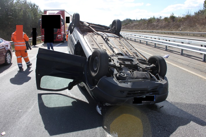 A63 Mehlingen – Am Dienstagmittag kam es auf der A63 bei Mehlingen zu einem Auffahrunfall mit zwei beteiligten Fahrzeugen. Ein 56-jähriger Fahrer eines Ford fuhr auf den vor ihm fahrenden Peugeot. Dadurch wurde dieser nach links an die Mittelschutzplanken geschleudert und überschlug sich anschließend. Danach kam er in Fahrtrichtung Mainz auf dem Dach liegend zum Stillstand. Der 23-jährige Fahrer wurde mit einem Rettungswagen ins Krankenhaus verbracht. Der entstandene Sachschaden beläuft sich auf rund 12000 Euro.