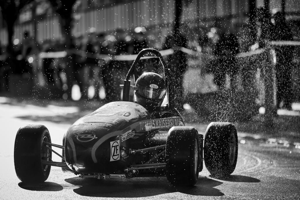 Ihren Ursprung hat die Formula Student in den USA, wo sich seit den 1980er Jahren die studentischen Rennteams messen. 1999 gastierte der Rennzirkus erstmals im englischen Silverstone. Der Wettbewerb besteht neben den Rennen, bei denen die Teams überzeugen müssen, auch aus Teilen, bei denen die Teilnehmer mit Konstruktions- und Wirtschaftswissen punkten müssen. Mittlerweile findet eine der größten Veranstaltungen der Rennserie in Barcelona statt. „Hier ist die Leistungsdichte am höchsten“, sagt Wollsiffer. Im vergangenen Jahr waren es rund 80 Teams aus ganz Europa. Hier feierte das Kaiserslauterer Team im letzten August mit seinem Wagen einen der bisher größten Erfolge: In der Disziplin „Cost and Manufacturing“ belegte es den ersten Platz.