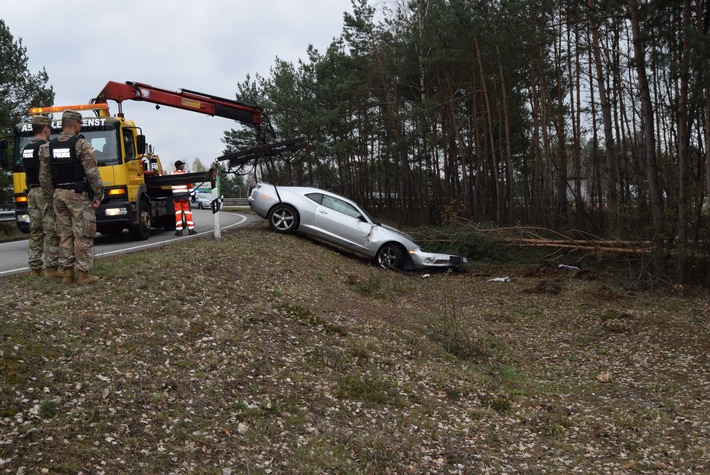 Am späten Freitagvormittag, ereignete sich an der Anschlussstelle Kaiserslautern-West ein Verkehrsunfall mit einer schwerverletzten Person. Nach eigenen Angaben, fuhr der 19-jährige Militärangehörige von der BAB 6 aus Mannheim kommend ab und wollte auf die B 270 stadteinwärts. Hierbei verwechselte er das Bremspedal mit dem Gaspedal, wodurch der PS-starke Sportwagen in der Rechtskurve geradeaus schoss und genau zwischen zwei Leitpfosten in einer Baumgruppe zum Stehen kam. Der Aufprall war so stark, dass mehrere Bäume dadurch umknickten. Wie durch eine Wunder, wurde der Fahrer nur leicht verletzt. Am PKW entstand Totalschaden. Der Gesamtschaden dürfte sich auf 25.000 EUR beziffern. Zur Sicherung der Unfallstelle sowie Versorgung des verletzten Fahrers, war die Feuerwehr Kaiserslautern sowie ein Rettungswagen im Einsatz. Der 19-Jährige wurde zur weiteren Versorgung in das WPK Kaiserslautern eingeliefert. Der beschädigte PKW musste durch einen Abschleppdienst aus der Baumgruppe geborgen werden. Die Abfahrt der Anschlussstelle KL-West war für die Dauer der Unfallaufnahme und Bergungsmaßnahmen für ca. eine Stunde gesperrt.