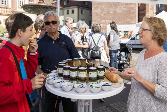Leckeres in netter Geselligkeit auf dem deutsch-französischen Biosphären-Bauernmarkt (Bild: Biosphärenreservat/Venus)