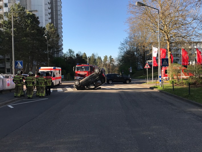 Durch den Anstoß schleuderte der vorfahrtsberechtige PKW und blieb auf seinem Dach liegen. Der 78-jährige Fahrer musste mit dem Rettungswagen in das Krankenhaus eingeliefert werden. Er erlitt Prellungen und Blutergüsse. Das Fahrzeug wurde von einem Abschleppdienst geborgen.