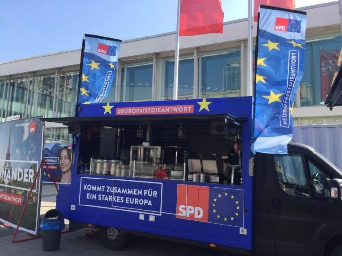Unser Europawahlkampf macht Tempo. Wir treffen die Menschen und begeistern sie für unser Europa: Mit den SPD-Infotrucks bei über 800 Terminen, an mehr als 60 Tagen und für mindestens 1.500 Stunden. Die Infotrucks kommen bundesweit in jeden SPD-Unterbezirk, auch zu uns nach Kaiserslautern. Der SPD-Infotruck ist auch ein FOODTRUCK und bietet neben belgischen Waffeln (kostenlos) auch Kaffee und alkoholfreie Getränke an.