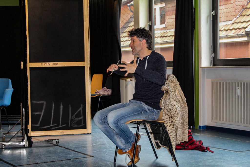 Da heute der letzte Tag war, haben wir lediglich das Stück als solches geprobt. Wir haben die 3 verschiedenen Akte des Stückes komplett durchgespielt und übten sogar unseren Applausgang. Genauso hatten wir unsere Generalprobe und haben mit Tipps von Manuel Klein ein letztes mal das Stück verbessert. Daraufhin haben wir noch Fotos für das Theater gemacht und dürfen nun auf unsere morgige Vorstellung fiebern. Ich bin gespannt auf morgen und freue mich auf unseren Auftritt.