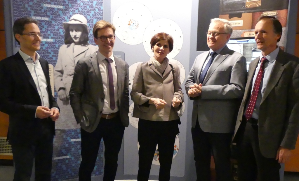 Bu Titelbild: Freuen sich über die gute Resonanz (von links): Johannes Thomas, Schulleiter der Anne-Frank-Realschule plus, Patrick Siegele, Direktor des Anne Frank Zentrum Berlin, Prof. Dr. Cornelia Reifenberg, Bürgermeisterin der Stadt Ludwigshafen, Theo Wieder, Vorsitzender des Bezirkstags Pfalz, Friedrich Burkhardt (Direktor des Theodor-Heuss-Gymnasiums)