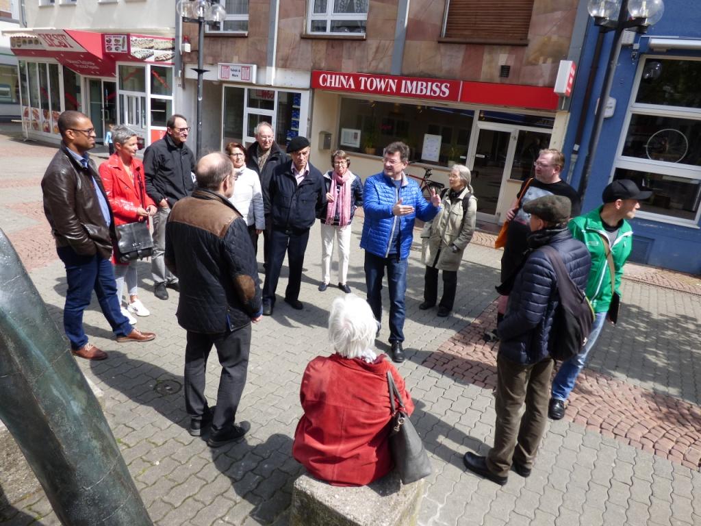 „Oft wird eine Stadt mehr aus der Autofahrerperspektive wahrgenommen“, meinte die Bürgermeisterin bei ihrer Begrüßung am Unionskino. „Als Fußgängerin oder Fußgänger findet dagegen ein ganz anderes Erleben statt.“ Ein Gespür dafür zu bekommen, wie die Stadt aus dieser Perspektive wirkt, sei Ziel ihrer Stadtbege(h)gnungen, von denen noch viele zu recht unterschiedlichen Uhr- und Jahreszeiten folgen werden. Dabei sollen vor allem die Themen Angsträume, Sicherheit und Sauberkeit immer wieder im Fokus stehen. Beate Kimmel ermunterte in diesem Zusammenhang die Anwesenden, sich bei Problemen in ihrem Viertel direkt mit den zuständigen Stellen bei der Stadtverwaltung in Verbindung zu setzen. „Dort wird Ihnen kompetent geholfen“, lobte sie das große Engagement der Mitarbeiterinnen und Mitarbeiter bei der Stadtbildpflege und im Rathaus. „Über 80 Prozent der Beschwerden werden innerhalb von 48 Stunden erledigt“.