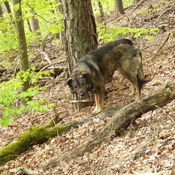 Am 16. Mai wurde unsere Tierrettung zu einem traurigen Einsatz gerufen. Im Wald von Kaiserslautern, genauer gesagt Blechhammer, würde ein Hund, an einem Baum sitzend gefunden.