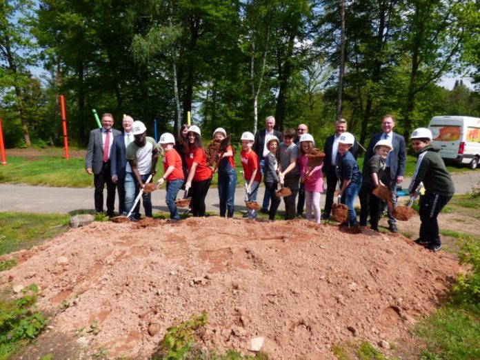 BU: Beim Spatenstich zum neuen Fachklassentrakt am Schulzentrum Süd griffen die Schülerinnen und Schüler beherzt zur Schaufel © Stadt Kaiserslautern
