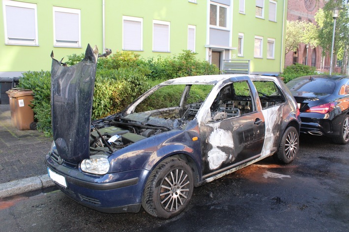 Am frühen Freitagmorgen bemerkte ein Anwohner in der Tannenstraße einen brennenden PKW. Aus bislang ungeklärten Gründen war im Innenraum des geparkten Fahrzeugen das Feuer ausgebrochen und hat sich schnell zu einem Vollbrand ausgebreitet. Die Feuerwehr konnte ein Übergreifen des Feuers auf andere geparkte Fahrzeuge verhindern. Der Zeitwert des ausgebrannten Fahrzeuges dürfte ca. 1000 EUR betragen.