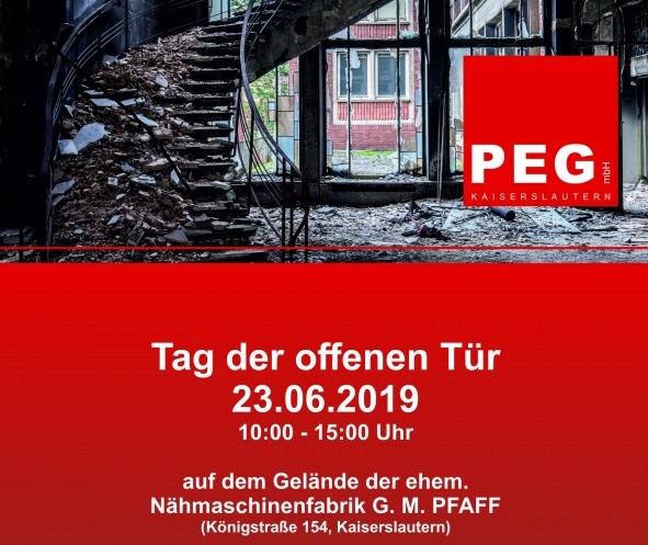 Unabhängig vom Tag der Offenen Tür können sich Interessenten auch jederzeit für eigene Führungen bei der PEG melden. Das gilt ausdrücklich auch für Künstler, die das Areal für ihre Zwecke nutzen möchten. Ein Kontaktformular ist auf www.pfaff-quartier.de zu finden. Dort sind auch zahlreiche weitere Infos rund ums Thema Pfaff hinterlegt. Highlight ist der virtuelle Rundgang über das Areal, das noch vor dem Beginn des Rückbaus komplett für 360°-Anwendungen fotografisch dokumentiert wurde. Wahrscheinlich im Herbst wird zudem ein virtueller Rundgang durch das Pfaff-Quartier der Zukunft online gehen, der derzeit in Zusammenarbeit mit dem Kaiserslauterer IT-Unternehmen ZReality auf Basis des bekannten Rahmenplans realisiert wird. Damit können sich alle Nutzer einen ersten Einblick verschaffen, wie es künftig zwischen Königstraße und Herzog-von-Weimar-Straße möglicherweise aussehen wird.