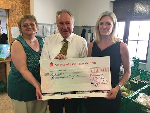 Wie bereits in den Vorjahren, ließ es sich der Vorstandsvorsitzende der Stadtsparkasse, Karl-Heinz Dielmann nicht nehmen, persönlich im Tafelladen in der Wollstraße. 1 vorbeizuschauen um den symbolischen Spendenscheck der Stadtsparkasse zu überreichen. Marina Siles von der Tafel e.V. nahm die Spende im Namen des Vorstands und aller Ehrenamtlichen sehr dankbar entgegen. Gemeinsam mit Andrea Brunnett, stellv. Bereichsleiterin Marketing & Öffentlichkeitsarbeit, verfolgte Karl-Heinz Dielmann anschließend das Treiben bei der Lebensmittelausgabe. Auch an diesem Dienstagnachmittag fanden sich zahlreiche Bedürftige im Laden ein und holten sich gegen Vorlage ihres Tafelausweises „ihre Tasche“ mit Lebensmitteln ab. Obst, Gemüse, Milchprodukte, Backwaren und vieles mehr wurden von den ehrenamtlichen Helfern zuvor bei Supermärkten und Bäckereien eingesammelt und dann im Tafelladen vorsortiert und aufgebaut.