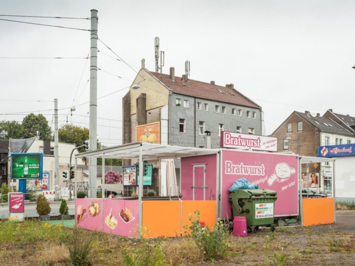 Zwischen 2011 und 2016 reiste Peter Bialobrzeski dafür durch Deutschland und kam mit 30.000 Belichtungen von Orten und von Unorten zurück. Er war unterwegs in Andernach, Berlin, Bottrop, Eisenhüttenstadt, Hamburg, Hagen, Haßloch, Meißen, Frankfurt, Offenbach, Wolfsburg, vor allem aber im weiten Dazwischen, im Fremdvertrauten, das sich an allen Orten gleicht.