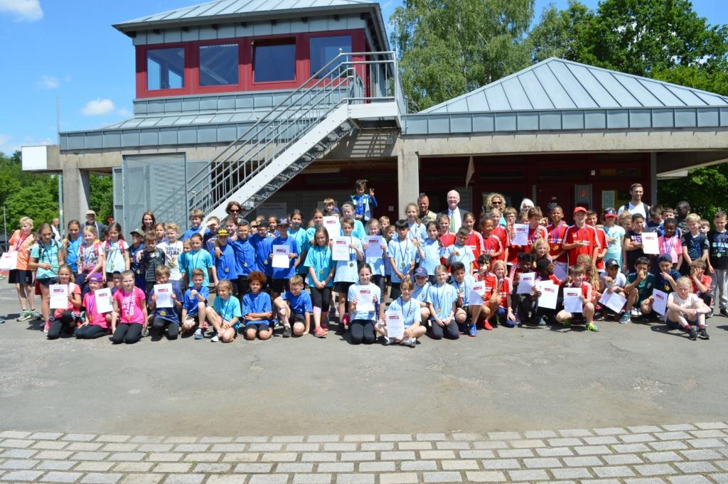 Die Preise wurden vom Beigeordneten und Sportdezernenten Joachim Färber, Hans-Peter Frey, als Vertreter der SWK Versorgungs-AG mit dem Organisator der Veranstaltung, Sven Weilemann, Fachberater für den Schulsport in Kaiserslautern, überreicht. Alle Mannschaften erhielten Urkunden und jeder der kleinen Athleten bekam eine Medaille überreicht. Die Erstplatzierten in den Einzeldisziplinen wurden mit Urkunden und einem kleinen Pokal geehrt. Die Medaillen und Pokale wurden von den Stadtwerken Kaiserslautern (SWK) zur Verfügung gestellt.