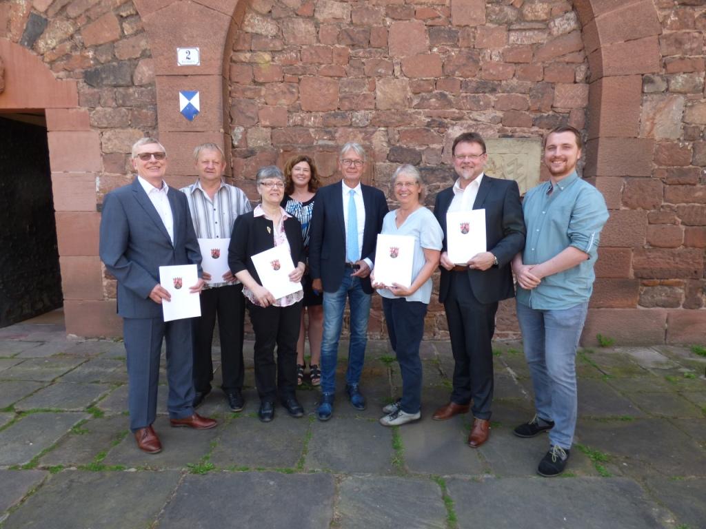 Mit einer Dankesurkunde des Landes Rheinland-Pfalz und einem kleinen Präsent haben Oberbürgermeister Klaus Weichel, Eric Burkhardt vom Personalrat und die stellvertretende Leiterin des Referats Personal, Karin Woll, heute Morgen im Pfalzgrafensaal des Casimirschlosses zwei Mitarbeiterinnen und drei Mitarbeiter der Stadtverwaltung anlässlich ihres 40-jährigen Dienstjubiläums gewürdigt.