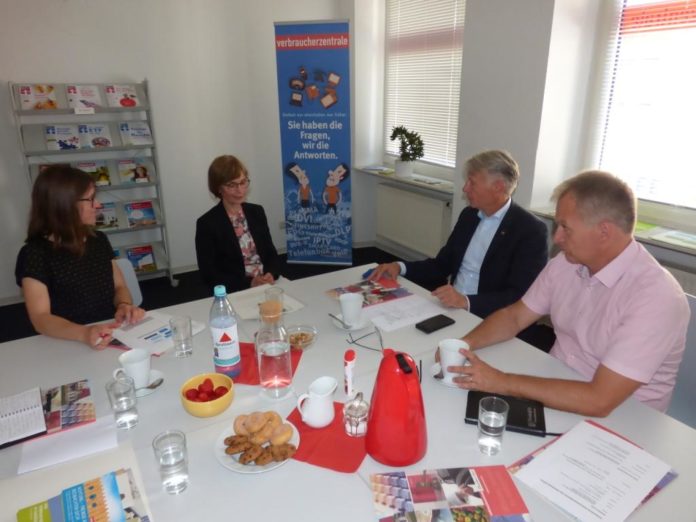 Oberbürgermeister Klaus Weichel und WFK-Geschäftsführer Stefan Weiler haben am Dienstagmorgen im Rahmen ihrer regelmäßigen Betriebsbesichtigungen die Beratungsstelle der Verbraucherzentrale Rheinland-Pfalz in der Fackelstraße besucht. Gemeinsam mit der Leiterin der Beratungsstelle, Franziska Wolf, und Ulrike von der Lühe, Vorstand der Verbraucherzentrale Rheinland-Pfalz, tauschte man sich anderthalb Stunden lang rund um Themen des Verbraucherschutzes aus. Hauptthema dabei war der Umgang mit den immer komplexer werdenden Anforderungen der modernen Telekommunikationswelt.