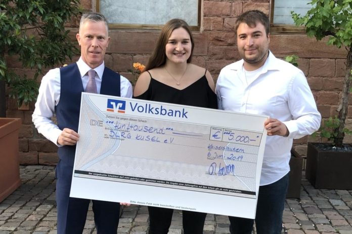 Kaiserslautern. Die DLRG-Ortsgruppe Kusel erhielt den erstmals ausgeschriebenen Förderpreis „Regionalhelden“ der Volksbank Kaiserslautern eG. Unter allen eingereichten Projekten überzeugte ihre Initiative „Sicher schwimmen und retten in Freigewässern“ die Jury am meisten. Einsatzleiter Patrick Bott und Trainerin Lea Brenneiser nahmen im Rahmen der Vertreterversammlung des Bankinstituts den Scheck in Höhe von